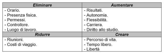 Tabella 1 - Il framework delle quattro azioni applicato all’Ambiente di lavoro basato sui risultati (ROWE).