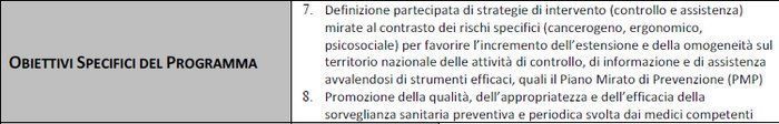 Si parla poi anche di un PP (Programma predefinito), individuato dal PNP: “PP8: Prevenzione del rischio cancerogeno professionale, delle patologie professionali dell’apparato muscoloscheletrico e del rischio stress correlato al lavoro”.