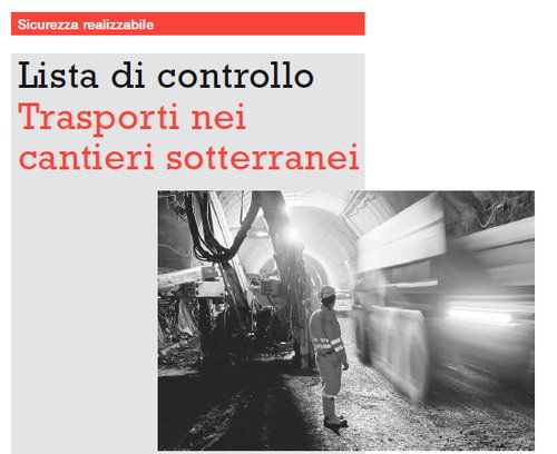 A ricordarlo e a soffermarsi anche sui rischi di investimento è una lista di controllo prodotta dall’Istituto Suva (istituto svizzero per l'assicurazione e la prevenzione degli infortuni) che, pur avendo diversi anni sulle spalle, può essere ancora utile per migliorare la prevenzione dei rischi connessi ai trasporti nei lavori in sotterraneo.