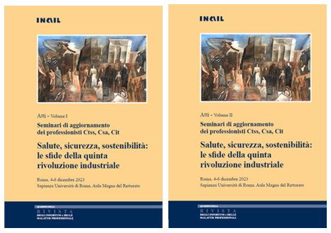 Inail, Consulenza tecnica per la salute e la sicurezza, Consulenza statistico attuariale, Consulenza per l’innovazione tecnologica, “Atti - Seminari di aggiornamento dei professionisti Ctss, Csa, Cit - Salute, sicurezza, sostenibilità: le sfide della quinta rivoluzione industriale”, volume I e volume II, Quaderni della rivista degli infortuni e delle malattie professionali, edizione 2023: