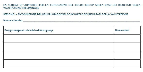 Ricordo che nel documento è presente anche la vera e propria “scheda di supporto” compilabile per la conduzione del focus group sulla base dei risultati della valutazione preliminare.