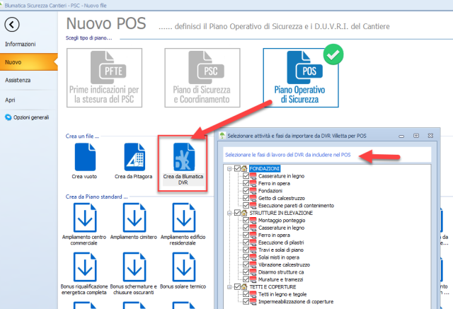 Partendo da un file di lavoro realizzato con Blumatica DVR si ha la possibilità di scegliere solo le fasi di lavoro svolte nello specifico cantiere, riportando automaticamente tutti i dati già censiti: