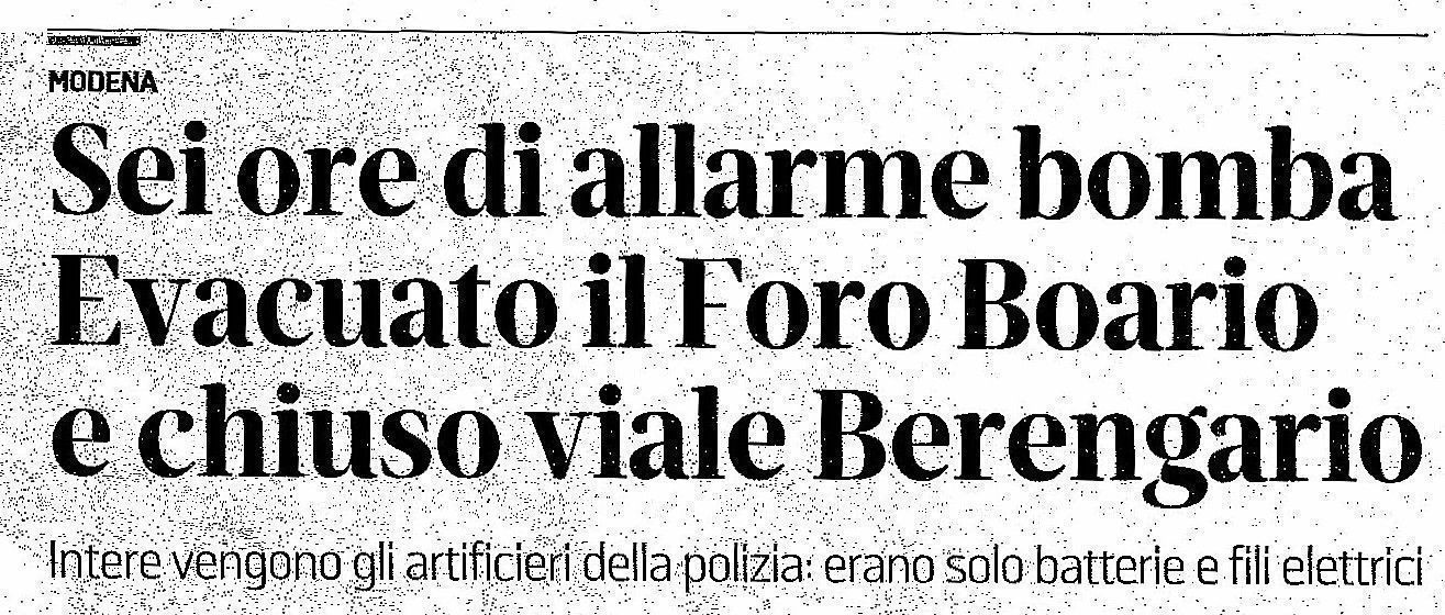 Insospettito, ha raccolto l’oggetto e lo ha messo sul piccolo motocarro, dove erano stoccati gli strumenti per la pulizia delle vie cittadine. Successivamente si è portato nelle vicinanze del mercato pubblico cittadino del lunedì, a una distanza di circa 500 m, attraversando le principali vie cittadine, perché desiderava mostrare l’oggetto agli agenti della polizia locale, che sempre sono presenti durante le ore di mercato. Giunto sul posto, alle 10:00, ha chiamato in causa gli agenti, che hanno osservato l’oggetto sospetto e hanno ritenuto opportuno circondare il motocarro con il consueto nastro bianco e rosso. Successivamente, gli agenti hanno deciso di allargare il perimetro di sicurezza, bloccando il traffico sulla via dove si trovava il motocarro e facendo evacuare gli edifici contigui. Poco prima delle 16:00 è arrivata un’auto della polizia con gli artificieri, che giungevano da Bologna. Gli artificieri hanno rapidamente valutato l’oggetto sospetto e hanno dato il via libera alla ripresa della circolazione, in quanto l’oggetto è risultato innocuo.