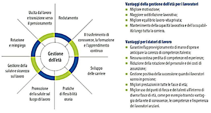 Riprendiamo dal documento (fonte EU-OSHA) un grafico relativo agli elementi chiave per una buona gestione dell’età: