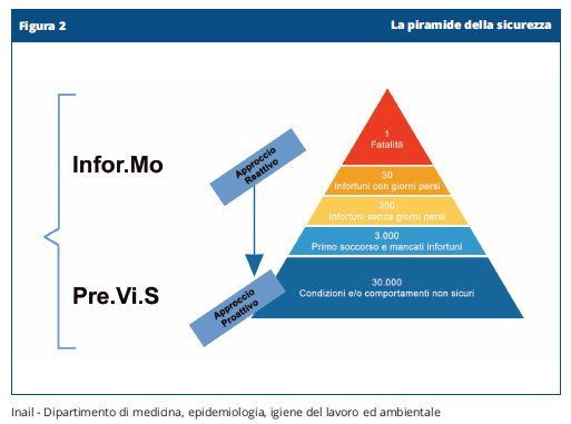 In sostanza – continua il documento – “si coniuga la sorveglianza degli eventi dannosi (gli ‘esiti’ della mancata prevenzione) con il monitoraggio dei fattori di rischio presenti nei luoghi di lavoro (pre-evento), attraverso un approccio sia reattivo che proattivo, consentendo una conoscenza più ampia delle criticità che caratterizzano la ‘piramide della sicurezza’”.