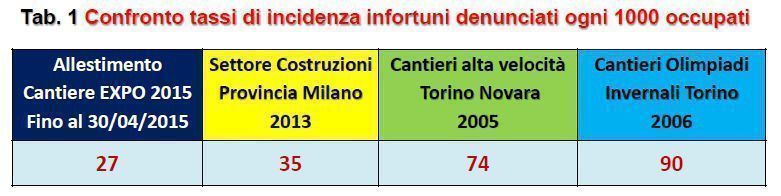- seguire con una modalità standardizzata il fenomeno infortunistico anche in un’opera di elevata complessità come il sito espositivo di EXPO 2015 e in tutte le grandi opere;